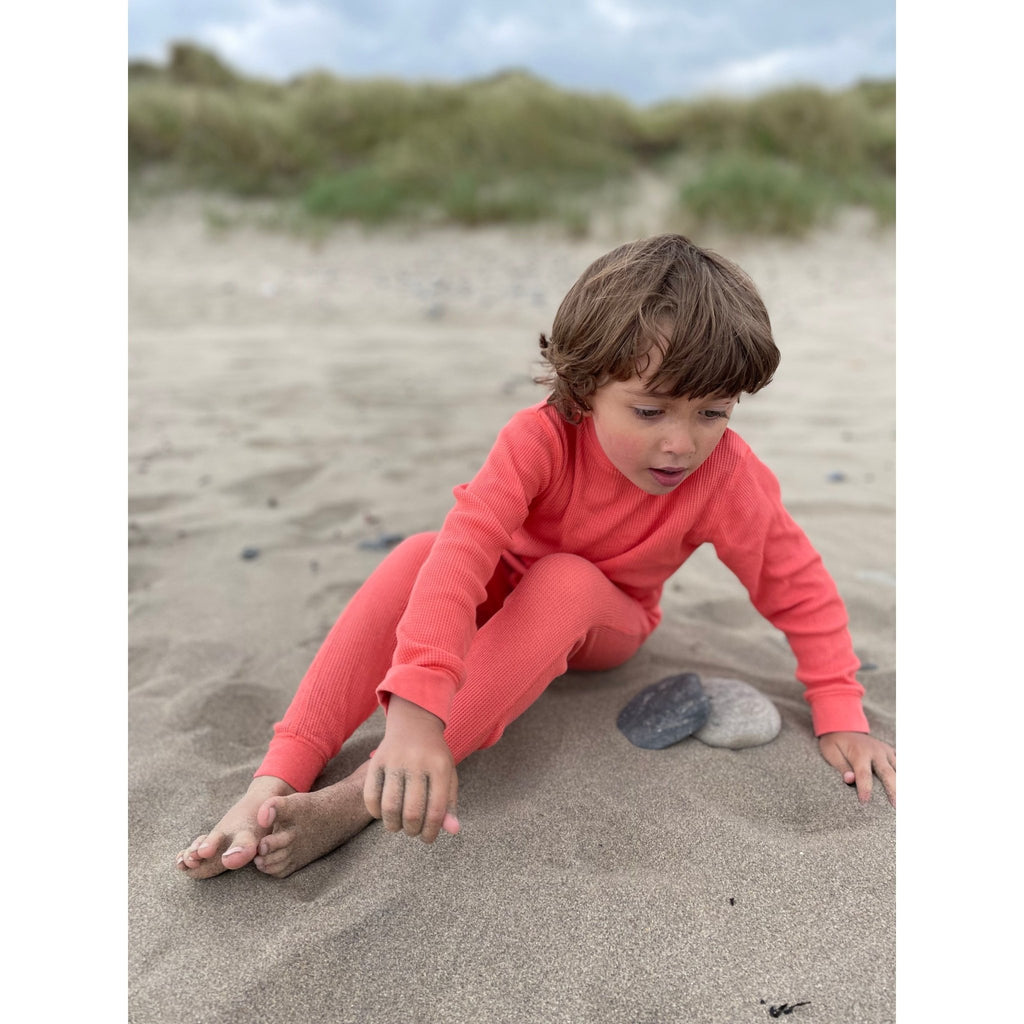 We’ve designed our waffle sets with kids’ comfort and parents’ peace of mind at heart. Made from super-thick, soft 100% GOTS-certified organic cotton, these sets are durable enough for daywear, soft enough for loungewear, and snuggly enough for pyjamas or long johns.