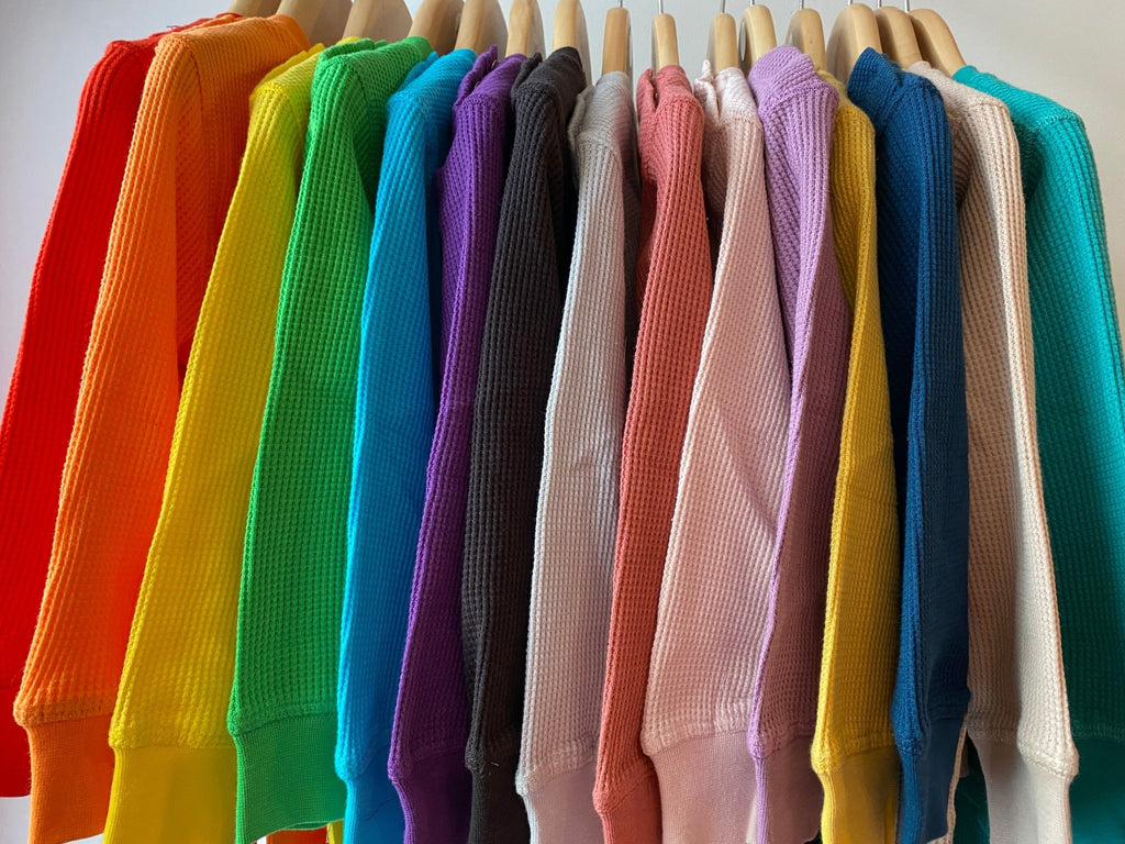 We have designed these sets for kids comfort and parents value. The super thick and soft 100% waffle cotton fabric is durable enough to be used as day wear, soft enough to be loved as lounge wear and snugly enough to be used as long johns or pyjamas. You can mix and match for funky bright outfits during the day or incredible nightwear that your kids will love.
